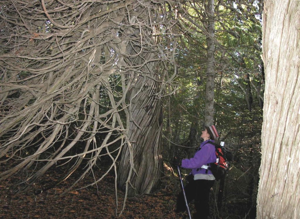 À l’époque, les comités régionaux du SIA avaient pour mission de tracer de 50 à 75 km de sentiers dans leur secteur respectif. « En Haute-Gaspésie, on devait déterminer à quel endroit on devait passer le sentier pour être le plus près de la falaise de L’Anse-Pleureuse sans que ce soit dangereux. C’est à ce moment que nous avons aperçu des cèdres thuyas qui avaient visiblement beaucoup de vécu. Je croyais même qu’ils auraient pu voir passer Samuel de Champlain et Jacques Cartier », explique le président fondateur du SIA, Viateur de Champlain.
