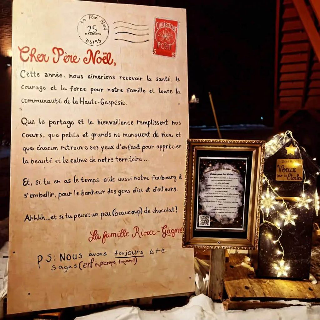 Finalement, la Fée des étoiles a aussi envoyé sa lettre au Père Noël où elle demande de la santé et du courage pour tous les citoyens de la Haute-Gaspésie ainsi qu’un quartier du Faubourg embelli pour le bonheur de tous… Sans oublier beaucoup de chocolat.