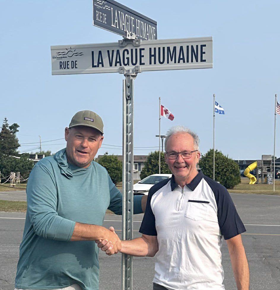 L’idée de nommer une rue a alors été évoquée. Le choix de la rue s’est fait naturellement puisque la petite artère mentionnée précédemment ne portait pas de nom. « De plus, c’est un peu la porte d’entrée d’où se tient la Vague humaine. Ça devenait donc un choix facile puisqu’on n’avait pas à renommer une rue et aucune maison ne sera construite sur ce tronçon », ajoute le maire annemontois.